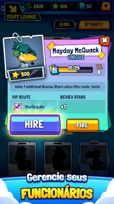 A gestão vai além da superfície; é uma arte estratégica. Forme uma impressionante frota aérea, começando com biplanos clássicos e avançando para aeronaves de grande porte, cada uma crucial para a sua expansão. Concomitantemente, expanda a infraestrutura do seu aeroporto com uma gama diversificada de estabelecimentos, desde lojas de conveniência a charmosas cafeterias e boutiques de souvenirs. Cada decisão sobre onde investir e o que construir é vital para maximizar os rendimentos e elevar o padrão de serviço. Além disso, monte uma equipe de elite: recrute pilotos experientes, funcionários de atendimento dedicados e uma tripulação de voo impecável, treinando-os para otimizar as operações.