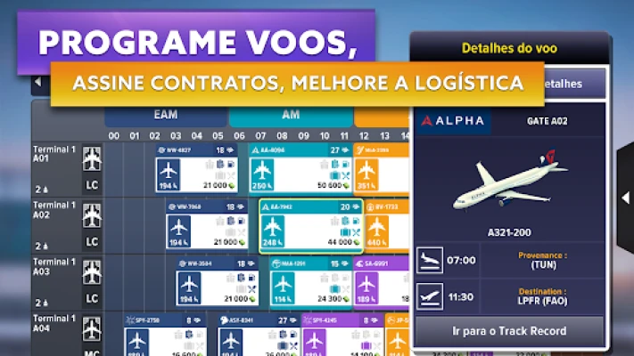 A maestria operacional está nas suas mãos. Desde o design e decoração de interiores e exteriores, até à otimização do fluxo de passageiros, cada decisão molda a experiência. Negocie parcerias estratégicas com companhias aéreas, expandindo a sua rede e construindo relações de confiança que o farão progredir no "Wings of Trust Pass", desbloqueando recompensas exclusivas. Gerir horários de voos 24 horas por dia, coordenar rotações de aviões e otimizar a logística para voos de curta, média e longa distância são apenas algumas das tarefas que o aguardam.