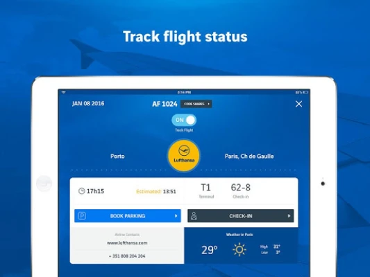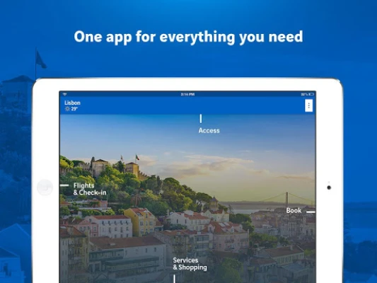 A aplicação ANA Aeroportos de Portugal coloca os aeroportos de Lisboa, Porto, Faro e mais, na palma da sua mão. Obtenha horários de voos em tempo real, faça check-in, reserve estacionamento ou lounge, e explore lojas e serviços. Tenha todas as informações essenciais para a sua viagem sempre atualizadas.