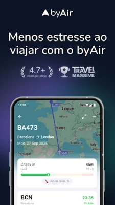 Prepare-se para transformar a sua experiência de viagem com byAir, a ferramenta definitiva que eleva a gestão de voos a um novo patamar de tranquilidade. Desde o momento da pesquisa até à aterragem, byAir oferece um controlo sem precedentes sobre cada detalhe da sua jornada. Obtenha acesso imediato ao estado atualizado de qualquer voo, incluindo horas de chegada estimadas, partidas reais, terminais, portões e dados de percurso, tudo com uma precisão cirúrgica que garante que você está sempre um passo à frente.