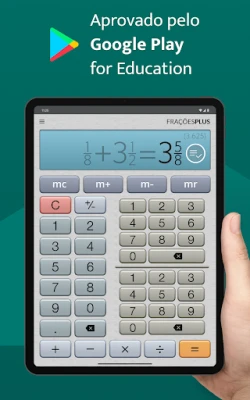Desenvolvido para oferecer uma experiência superior em telefones e tablets, o Calculadora de Frações Plus se destaca por sua interface intuitiva. Os cálculos são apresentados com nitidez impressionante, garantindo leitura fácil a qualquer distância. Experimente a agilidade incomparável do visor com teclado triplo, que permite inserir números mistos como 3 3/4 com apenas três toques. Cada resultado fracionário é automaticamente simplificado para sua forma mais elementar e, para sua conveniência, também convertido em um número decimal, oferecendo ambas as perspectivas instantaneamente. Além disso, as explicações passo a passo detalham o processo, promovendo uma compreensão profunda, e a calculadora decimal integrada permite trabalhar com frações, decimais ou ambos. A memória da calculadora (M+, M-) é um recurso valioso para múltiplos cálculos, somando ou subtraindo resultados parciais.