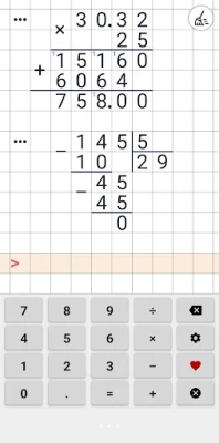 Domine operações numéricas avançadas com clareza incomparável. Explore a complexidade da divisão longa com um suporte detalhado, garantindo que cada etapa do processo seja totalmente transparente e compreensível. Realize multiplicações com casas decimais de forma impecável, transformando cálculos intrincados em soluções rápidas e precisas. Além disso, obtenha sempre divisões exatas, eliminando qualquer margem de erro e proporcionando a certeza absoluta em seus resultados.
