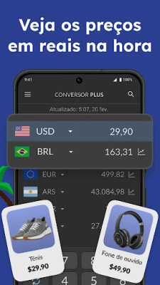 Navegue pelo mundo financeiro global com confiança e precisão usando o Conversor de moeda Plus grátis, seu companheiro essencial para qualquer transação internacional. Seja para comparar preços em mercados estrangeiros, gerenciar orçamentos de viagem ou simplesmente acompanhar o valor do seu dinheiro, este aplicativo proporciona taxas de câmbio ao vivo fornecidas pelo AccuRate™, garantindo a mais alta exatidão disponível. Mesmo em locais sem conexão, suas conversões permanecem precisas, graças à funcionalidade offline integrada, ideal para viagens de avião ou destinos remotos. E para as necessidades do dia a dia, a calculadora integrada com percentagens facilita gorjetas, descontos e todas as compras, permitindo que você visualize os custos na sua moeda local em tempo real.