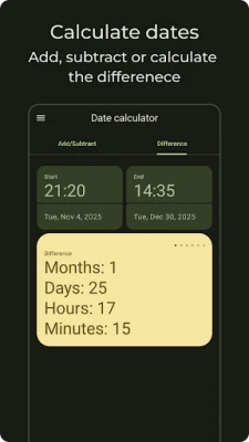 Vá além dos números com funcionalidades adicionais que simplificam o seu dia a dia. O Calculador de Datas permite que você some ou subtraia períodos, calcule diferenças entre datas e até crie eventos diretamente no seu calendário. Mantenha-se organizado com o Conversor de Horas, onde você pode adicionar fusos horários favoritos e personalizá-los com rótulos. Para um acompanhamento rápido da saúde, a ferramenta de Índice de Massa Corporal (IMC) oferece resultados instantâneos e precisos. Cada recurso foi pensado para proporcionar eficiência e controle, mantendo a promessa de um ambiente livre de anúncios e uma plataforma de código aberto.