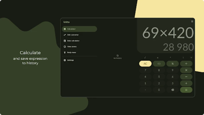Unitto é uma calculadora e conversor completo, sem anúncios e de código aberto. Personalize temas, use widgets e explore funções avançadas de cálculo, conversão de 601 unidades, moeda, datas, fusos horários e IMC. Sua ferramenta multifuncional essencial para o dia a dia.